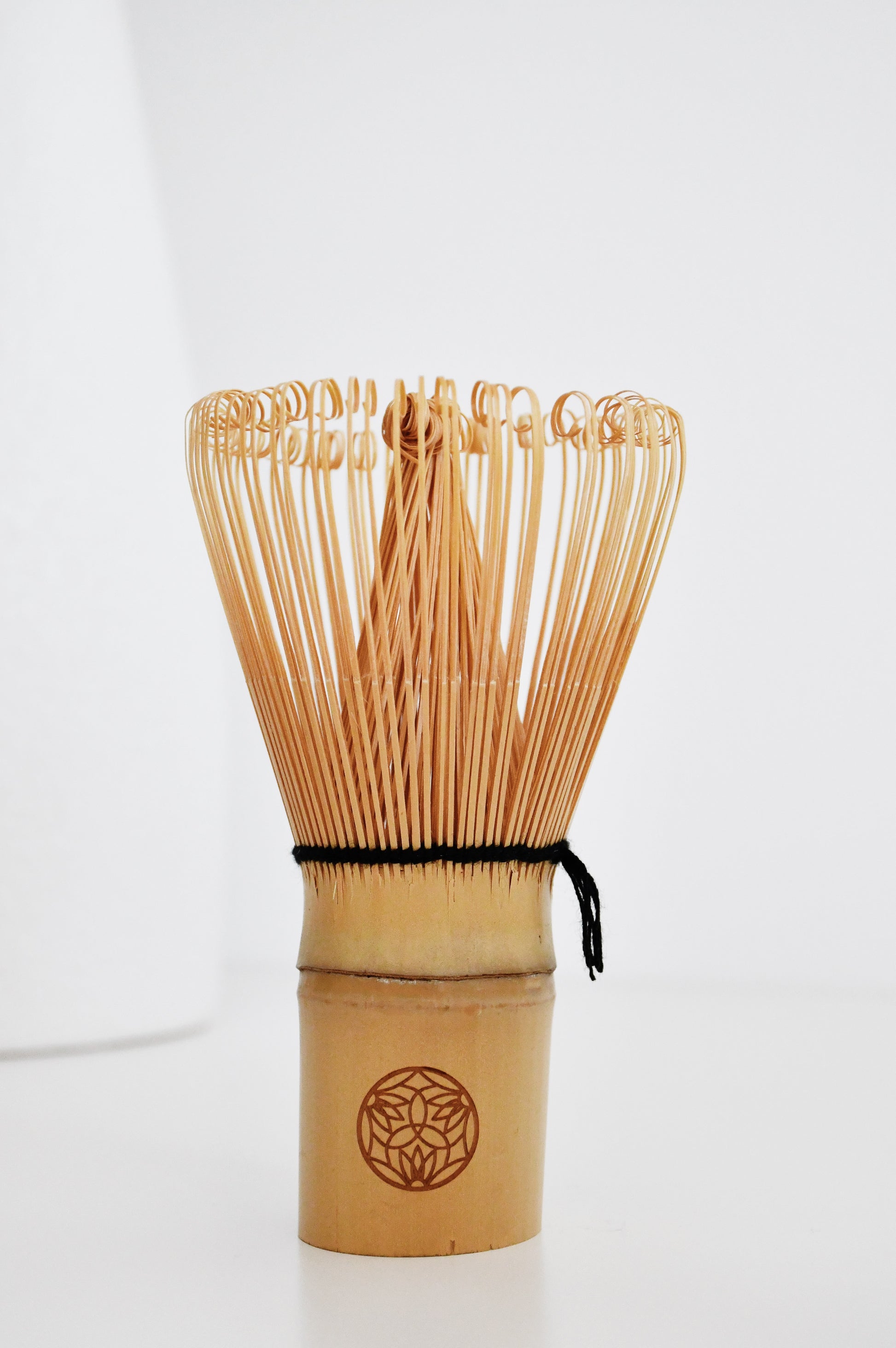 This handmade bamboo whisk, known as 'chasen' (茶筅), is traditionally used in Japanese tea ceremonies to prepare perfectly smooth matcha. Handcrafted from a single piece of winter-hardened bamboo by specialist chasen artisans in a family workshop that has been crafting these ceremonial masterpieces for generations, each traditional bamboo chasen is truly a unique work of art. It features 100 tines, each of which has been expertly cut, meticulously woven with string, and curled at the tip to allow for the tea to be efficiently whisked to create smooth-tasting matcha!